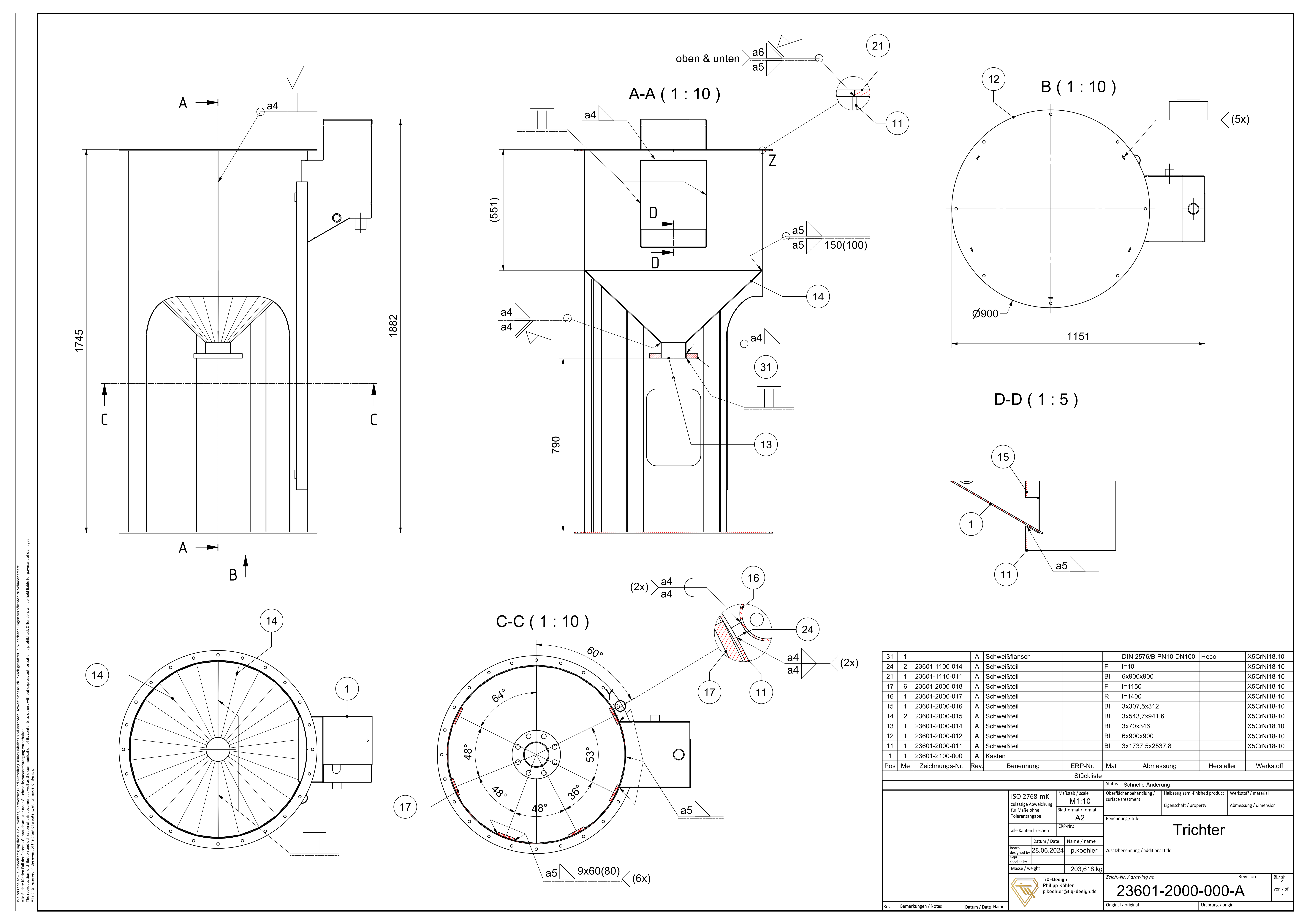 Für einen Kunden aus dem Metallbau habe ich einen bereits bestehenden Grafitabscheider vor Ort vermessen, nachkonstruiert und einen vollständigen, fertigungsgerechten Zeichnungssatz erstellt. Hintergrund dieses Projekts war die unzureichende Lebensdauer des Originals, welches aus Baustahl hergestellt wurde und den Anforderungen im Einsatz nur kurzfristig standhielt.