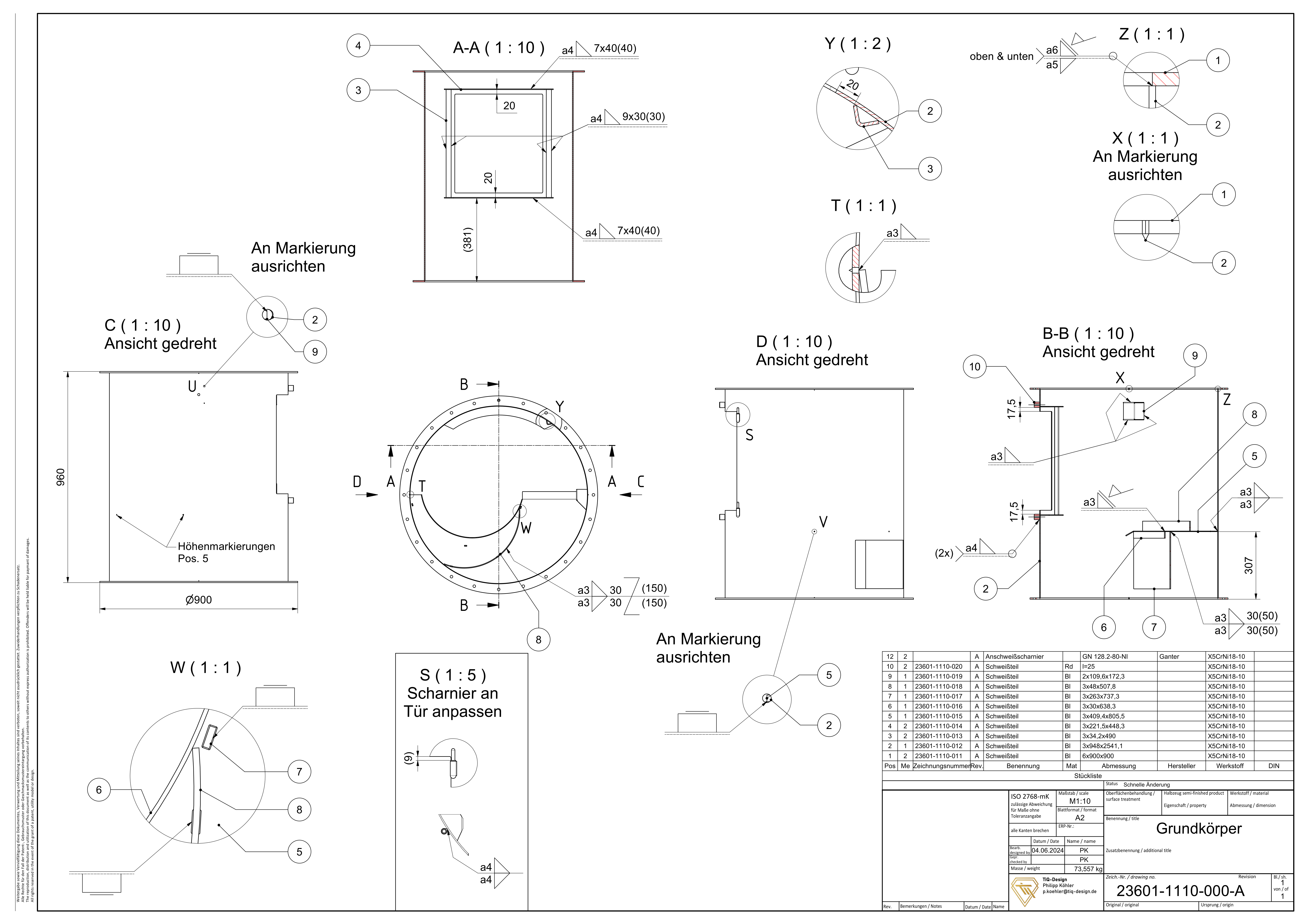 Bei der Konstruktion wurde gezielt auf eine Vereinfachung des Zusammenbaus der einzelnen Komponenten sowie auf eine verbesserte Schweißbarkeit geachtet. Die Positionen der Einzelteile waren konstruktiv eindeutig definiert, sodass die Montageprozesse erheblich vereinfacht und die Fehlerquote deutlich reduziert werden konnte.